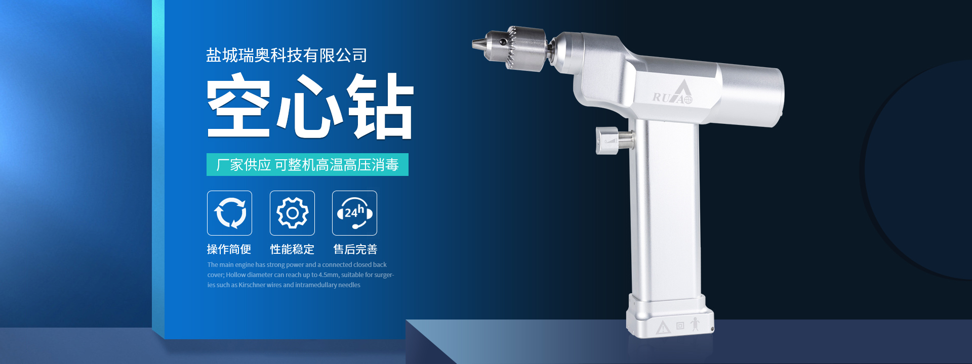 鹽城瑞奧科技有限公司主要產(chǎn)品:醫(yī)用電動鋸鉆系列(可高溫高壓消毒和熏蒸消毒兩種):包含骨鉆、擺鋸、胸骨鋸、空心骨鉆、開顱鉆、顱骨銑等等,適用于骨科、腦外科、神經(jīng)外科、胸外科、手足及顯微外科、脊柱外科、整形外科等各種手術的要求。電動石膏鋸可切割高分子繃帶、石膏等。基礎器械系列:咬骨鉗,髓核鉗,椎板咬骨鉗,持骨鉗,四肢骨折手術器械包等。